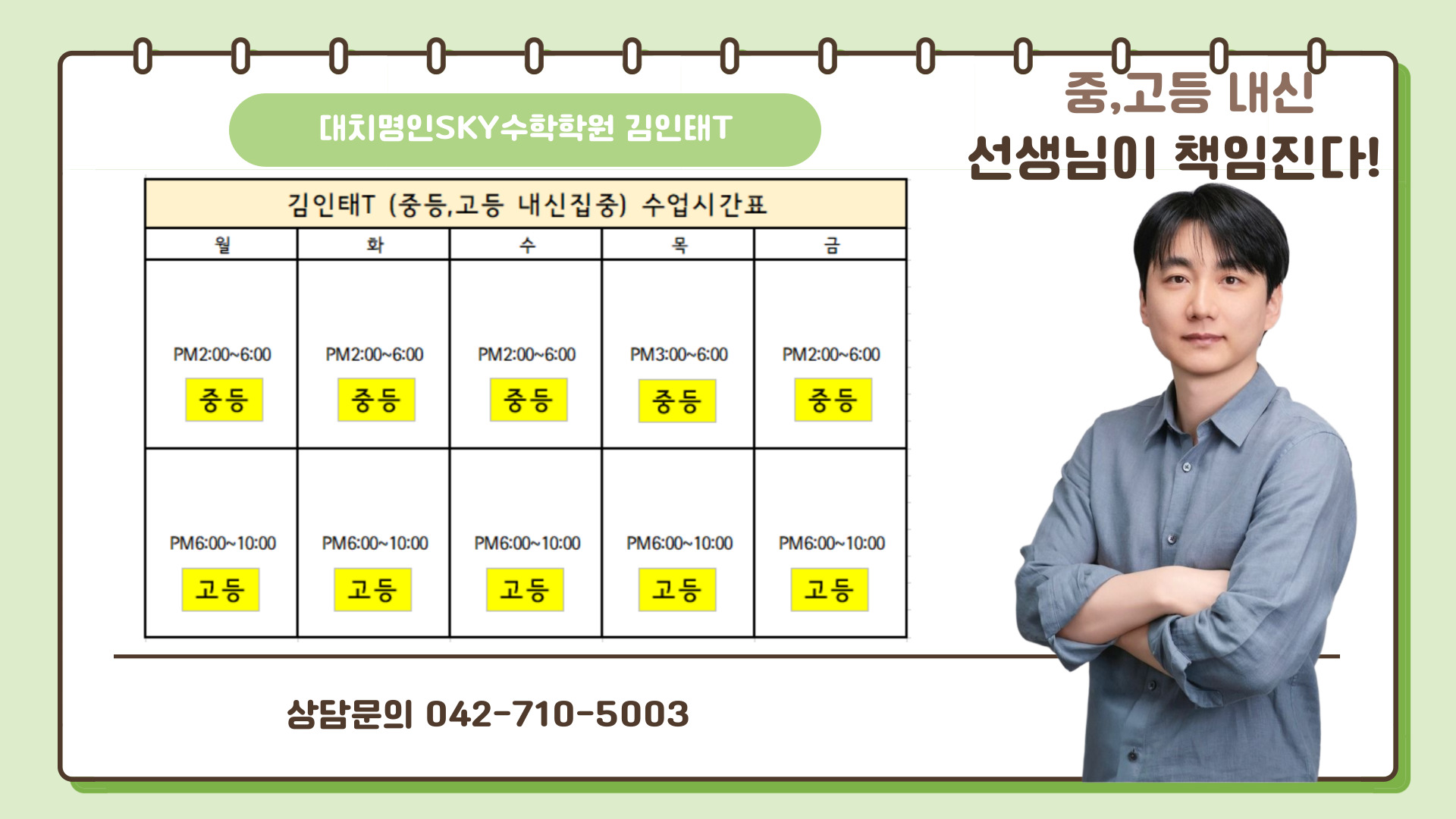 중등 및 고등1,2 내신 위주로 수업하시는 정관윤 선생님 시간표입니다.