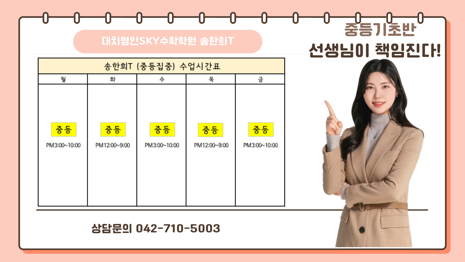 중등 기초반 위주로 수업하시는 송한희 선생님 시간표입니다.